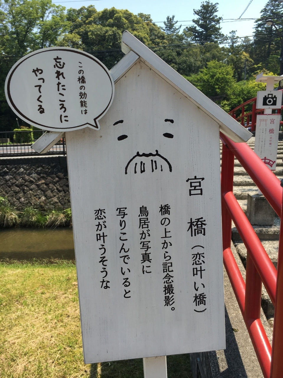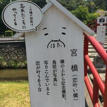 玉作湯神社の前にある紅い橋です。こちらは神社の鳥居と橋を一緒に撮影すると恋が叶うと言われています。ちゃんとカメラ台まで用意されていてそこから撮ると確実に一緒に撮れます。本当かどうかはさて置き、女性同士なら盛り上がること間違いなしです!