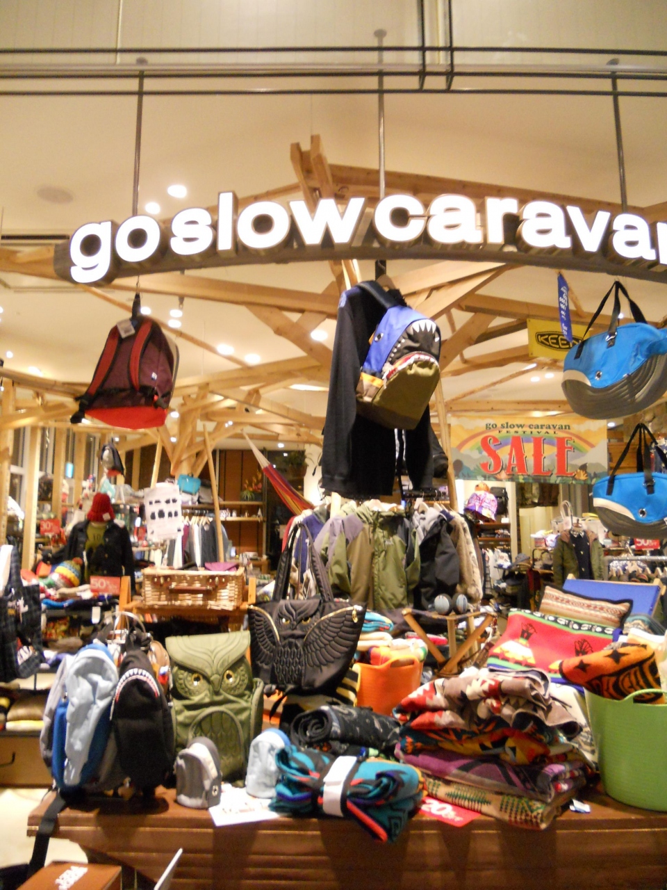 「go slow caravan(ゴースローキャラバン)」は、2013年6月にオープンした三菱地所の大型商業施設「マークイズみなとみらい」の2階、南側の「ABCマート」の隣にある、カジュアル&スポーツウェアのショップです。