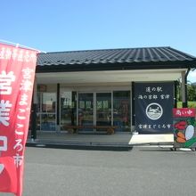 宮津シーサイドマートミップルという大きな商業施設のそばにあり、道の駅としては比較的小さな規模で、“宮津まごころ市”という農産物等直売所には地元産の野菜や果物、干物、お土産等が販売されていますが、品ぞろえは多くありません。