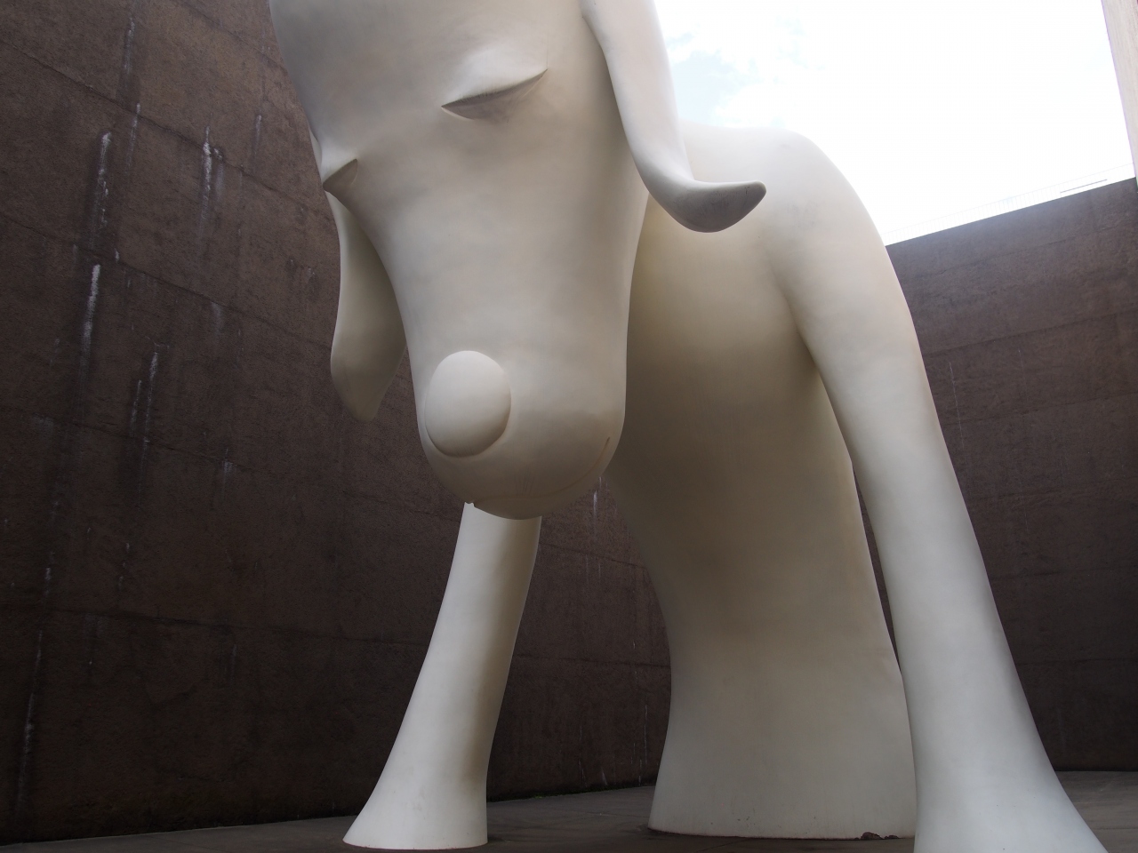 青森駅から巡回バスねぶたん号で行き、三内丸山遺跡といっしょに観光しました。見たかったあおもり犬は美術館に入らずに見学できます。あおもり犬の見学コースは美術館の入口手前に案内板が出ていて、その通り階段、ビルの壁沿いなどを歩くと数分であおもり犬のある広場に到着しました。同じような目的の数人もいました。