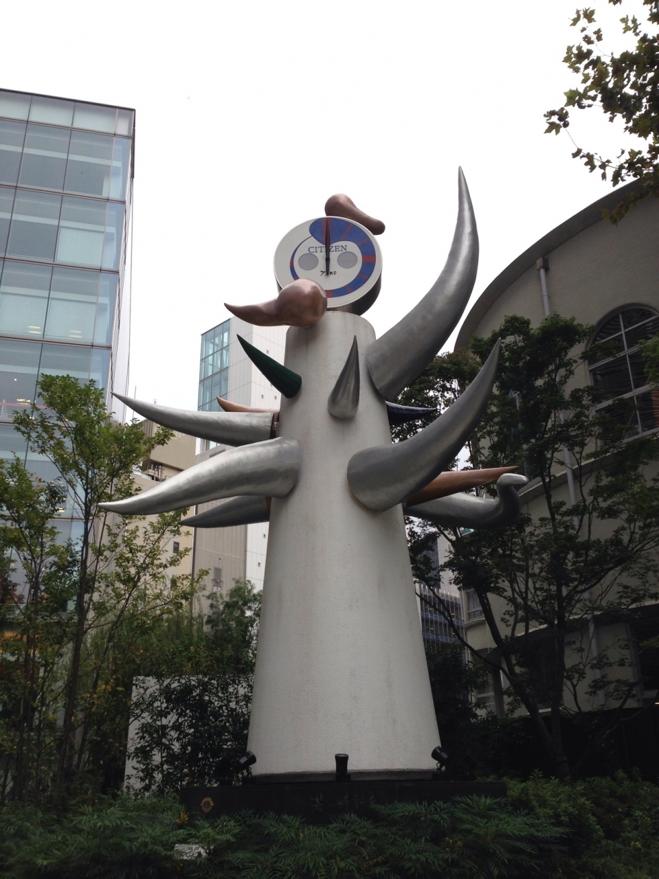 誰が見ても、どっから見ても、岡本太郎さんの作品と分かる 独特のモチーフ。 大阪万博の太陽の塔の親戚みたいな塔は たしかに万博のそれより小ぶりで若さを感じます。