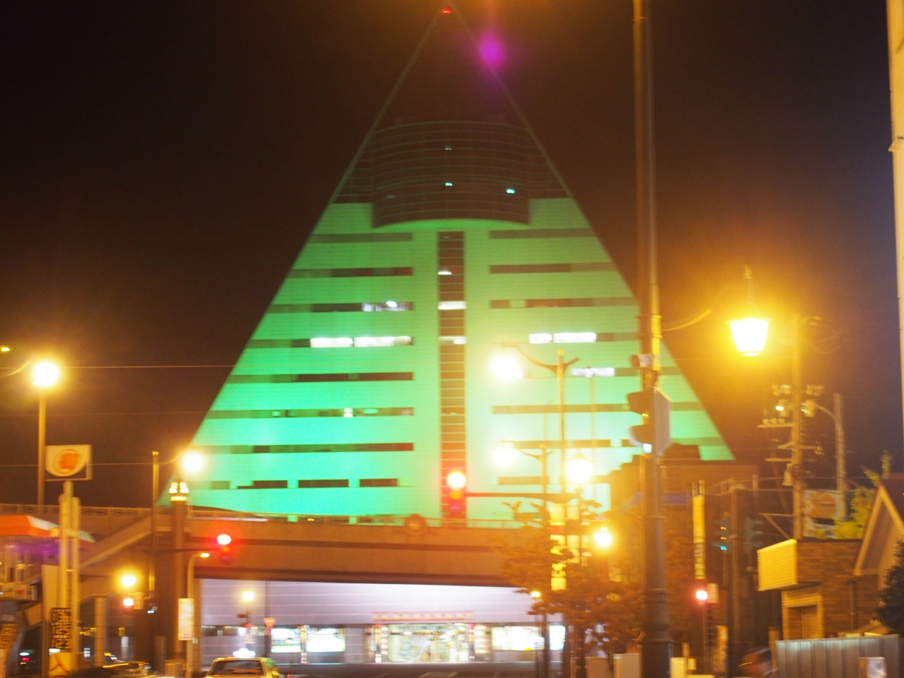 アスパムは青森駅から歩いて10分ほどにあり、青い海の公園に面してあります。ビルの形は三角形の珍しい形をしています。1階にはお土産などがある売店があります。2階はイベントスペースでねぶたが展示されていたり、津軽三味線の演奏、パノラマ映画などがあります。夜はライトアップされていました。