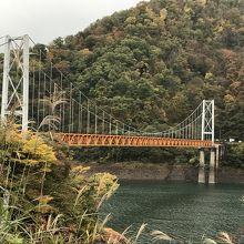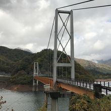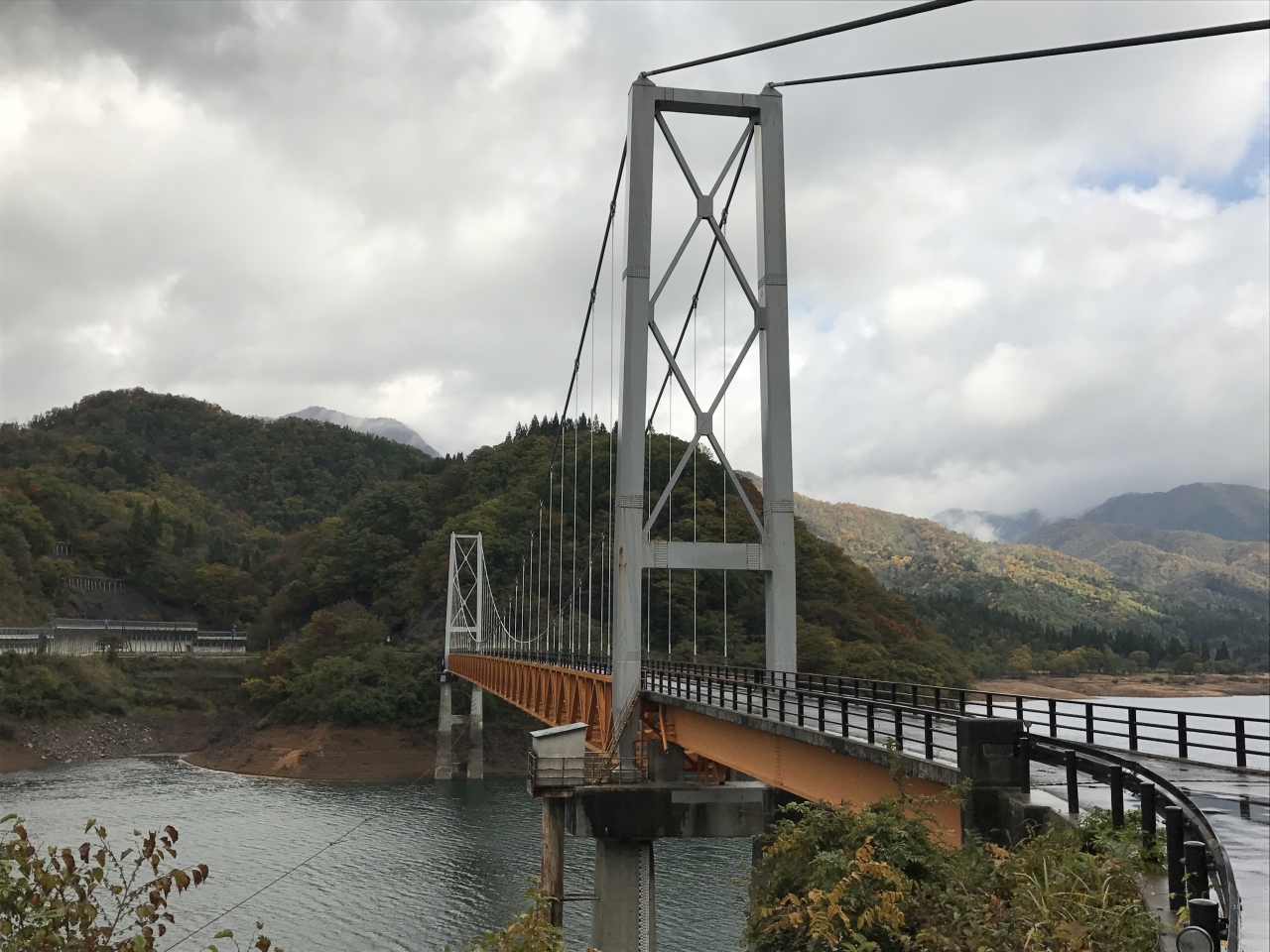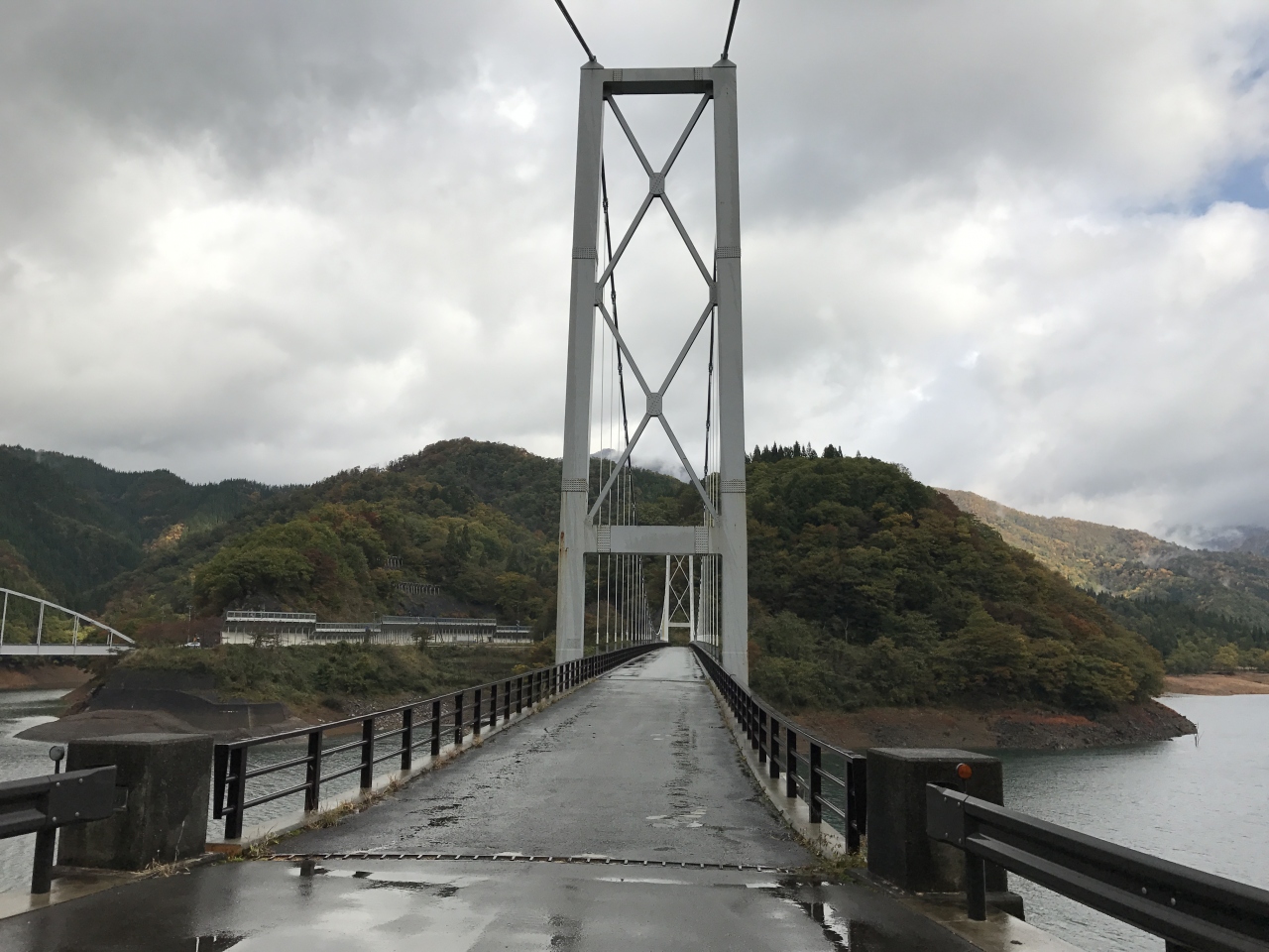 九頭竜ダムを見学して白鳥の方へ進むと営業終了?のレストハウスがありそのあたりから綺麗な吊り橋が見えてきます。別名夢の懸け橋?名前の由来は瀬戸大橋の試作品として本当に瀬戸内海に吊り橋が出来れば夢のよう???と思ったかどうかは知りません。