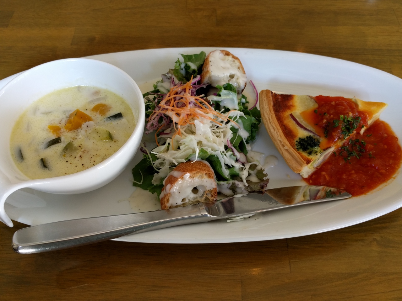 さつま芋とベーコンのキッシュやスープなど、野菜たっぷりで美味しかったです。