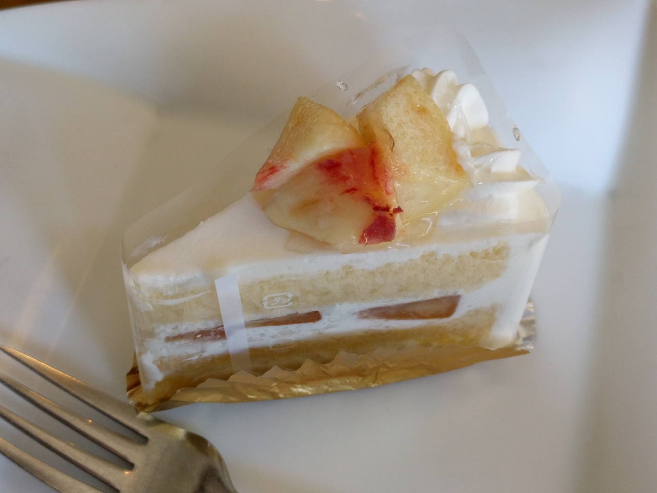 ショーケースにあるデザートから白桃のショートケーキを選びました。