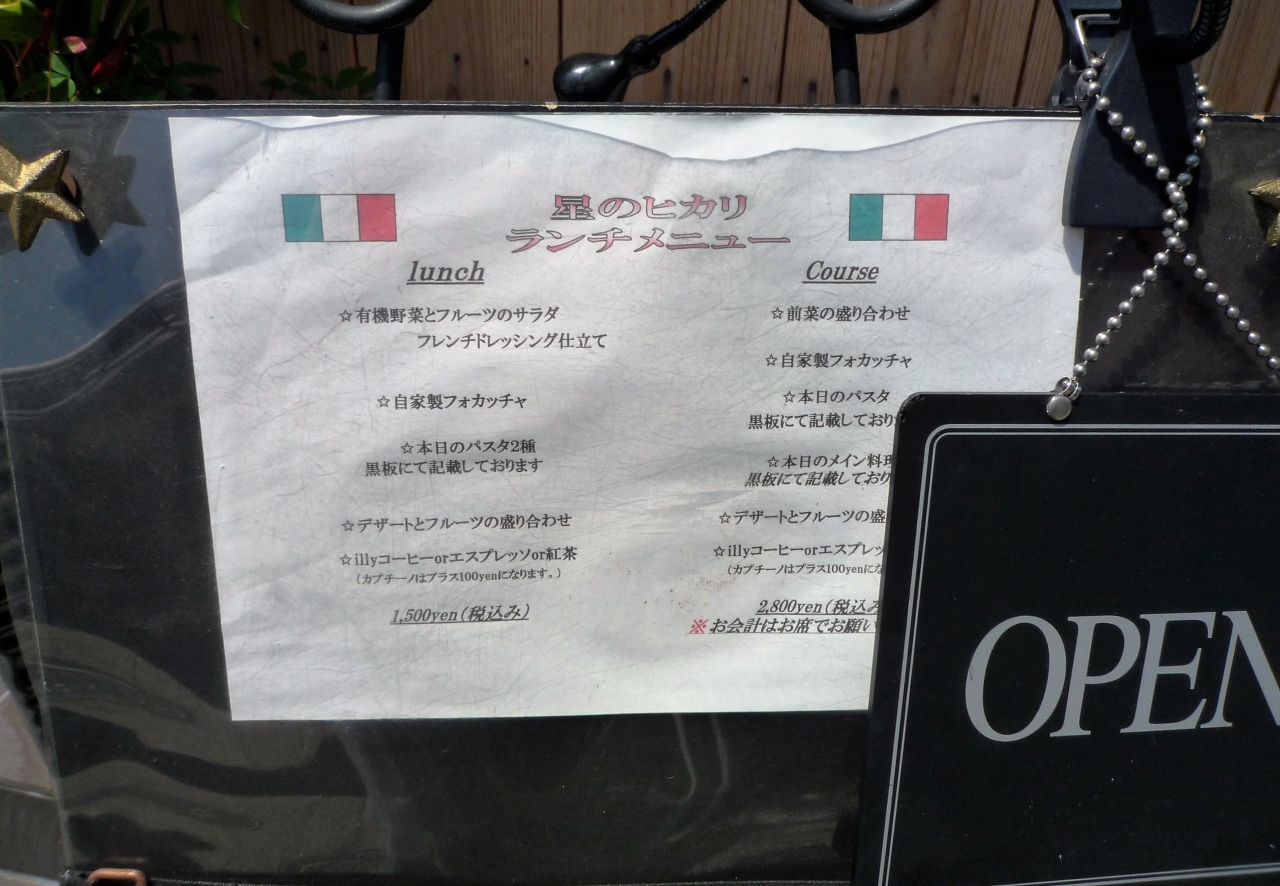 ランチコースは2種類あり、お店の外にメニューが出ています。