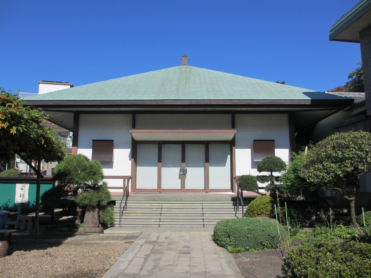 印刷博物館から小日向公園へ向かう途中にある浄土真宗の寺院です。通りには寺院が並んでいます。山門からまるで豪邸のような社務所に驚きながら本堂へ向かいました。本堂前には藤棚があり、手入れされている松が目をひきましたが、寺院に関する説明はありませんでした。近くに夏目漱石の菩提寺、本法寺があります。本法寺の方が関心ありました。