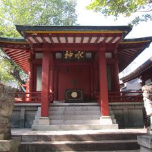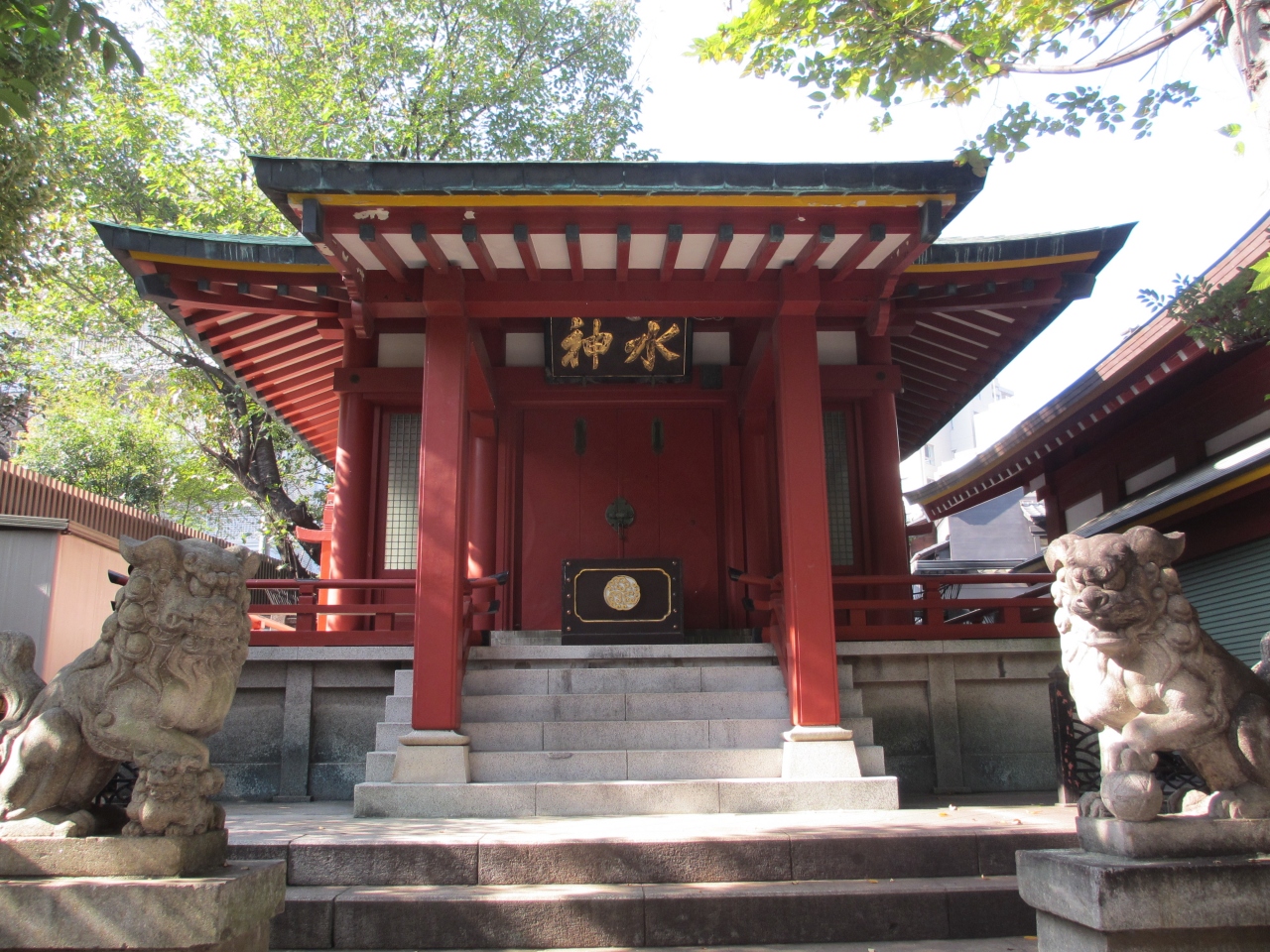 日本橋魚市場の守護神として信仰を集めています。現在の築地中央卸売市場にある水神社は遥拝所です。築地の水神社はここと比べるとこじんまりしています。祭神は弥都波能売命です。拝殿の左側に並ぶ神社の一つです。狛犬があるところが隣の小舟町八雲神社や大伝馬町八雲神社と違います。神田明神境内の各神社を見比べるのも興味深いです。