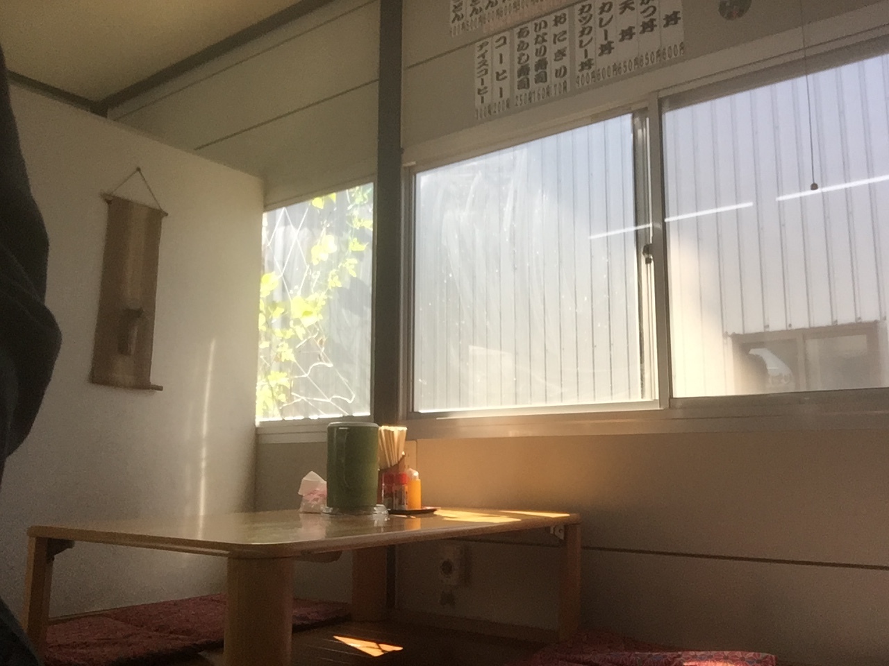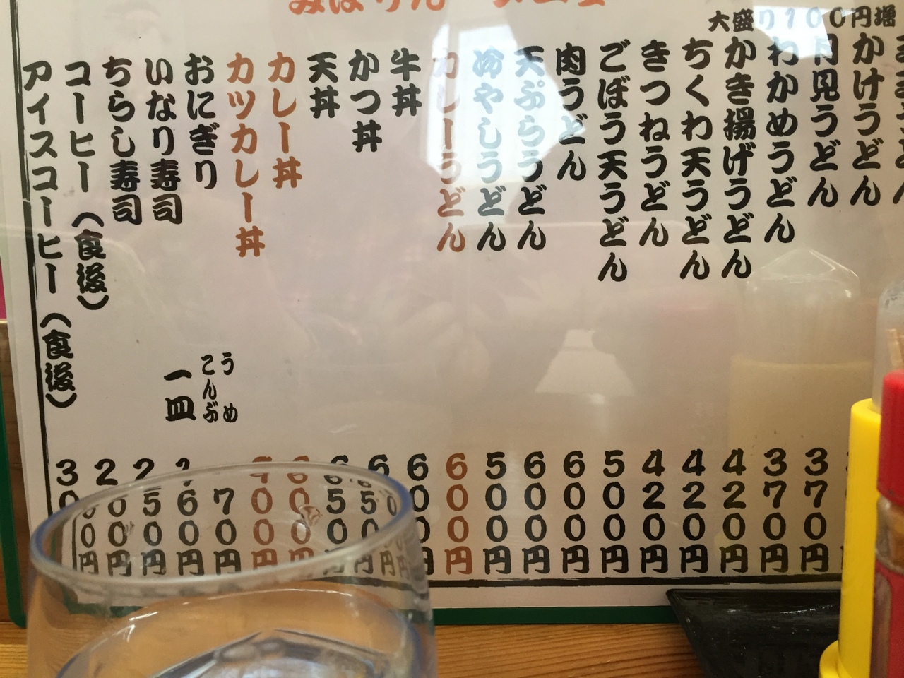 小さなカウンター席12, テーブル席8程度の店。午後1時だというのに、次々と客が絶えない。メニューのサイドにあるおいなりさん150円、五目ちらし200円は売り切れてました。うどんの麺はコシがあるけど、比較的細い。竹輪天、かき揚げうどんが良いかも。丼もあり、近くの工事現場の方もいらっしゃるようだ。