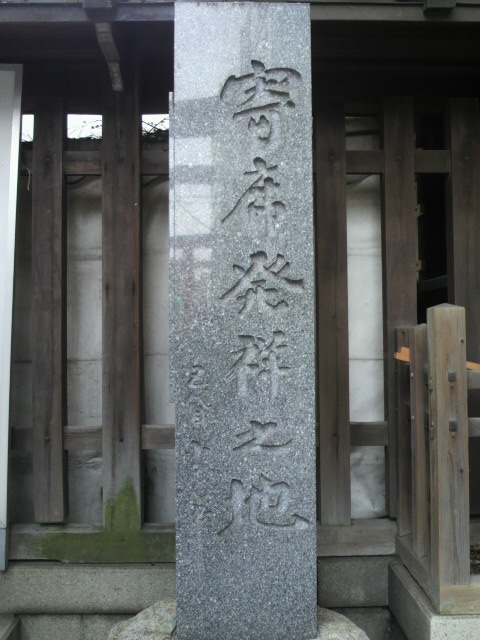 寄席発祥の地碑は、石製の四角柱で、丸形の台座の石の上に立てられています。