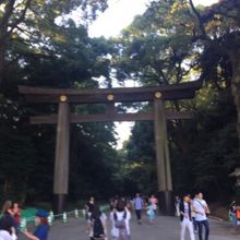 明治神宮のシンボルでもある大きな鳥居で、南参道と北参道の出合い口のところにあります。高さ12m、重さ13tと、木造の明神鳥居としては日本一の大きさを誇っているようです。