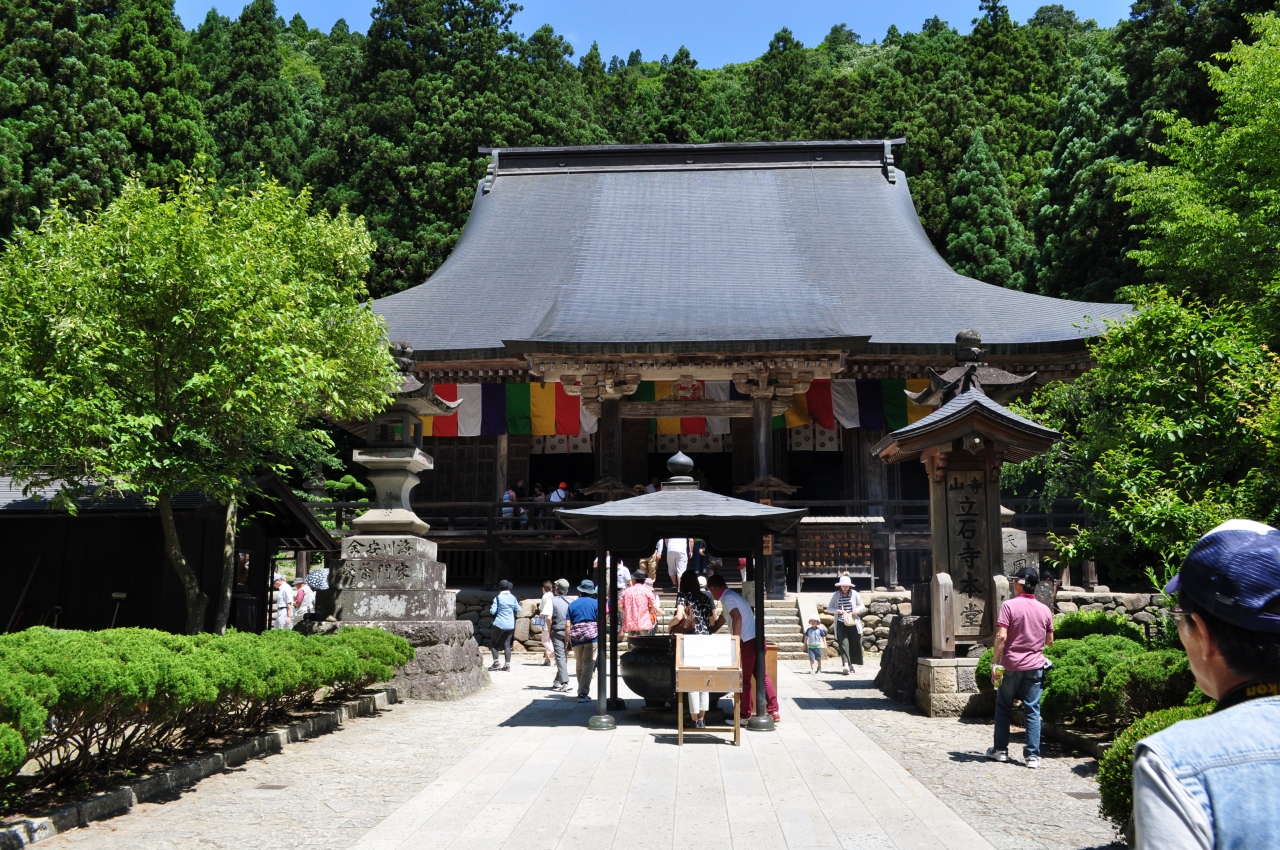 立石寺中堂は延文元年(1356年)、山形城主斯波兼頼によって再建されたとのことです。山寺の入口から入って階段を登るとすぐの場所にあります。山寺の中でもかなり大きな建物で、国指定重要文化財に指定されています。ここまでの階段の数はそれほど多くないので比較的参拝しやすいと思います。この辺りまでは無料でこれますが、ここから先は300円の入山料が必要となります。