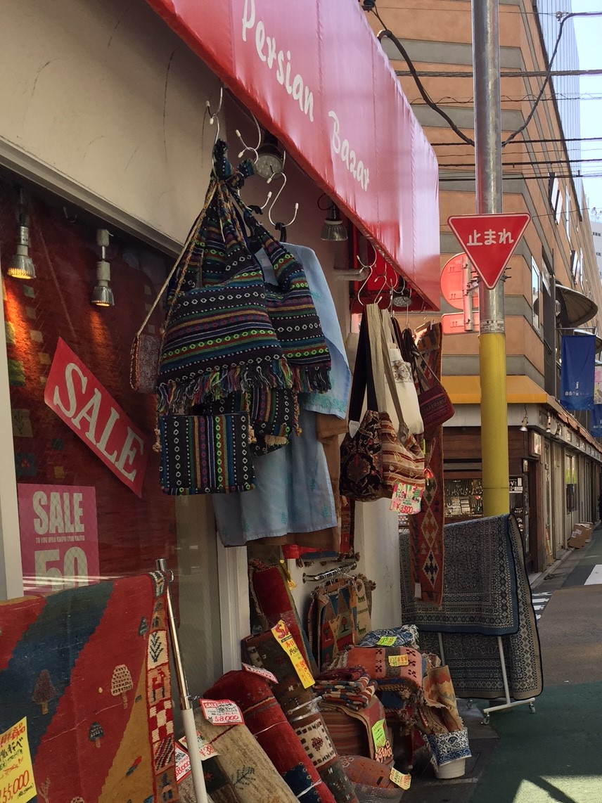 ペルシャンバザールは、東急自由が丘駅正面口から東横線沿いに渋谷方面に向かっていくとある、ペルシャ絨毯や民芸雑貨のお店です。ひかり街の角地にあり、何げに目立ちます。ペルシャ絨毯も素敵でしたが、アクセサリーも扱っていて、なかなか良かったです。