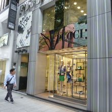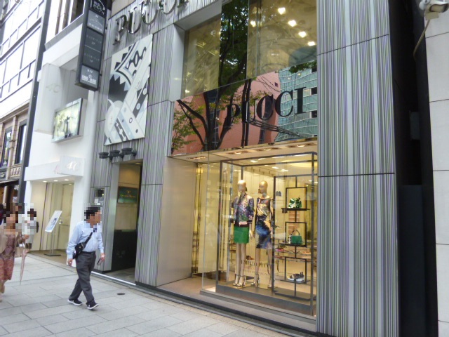 イタリア出身のデザイナーの手による大胆な色鮮やかなプリント柄のファッションを提案している、晴海通り沿いにあるブティックです。店頭のショーウィンドウには、緑のスカートに、大胆なプリントのされたトップスを組み合わせたマネキンが飾られており、足の高いハイヒールを履いていることもあって、これを着こなせる女性は多くないだろうかと思いました。店内は光がふんだんに取り込んだ、明るく上品な雰囲気で、ワンピースやスカートなど整然と並んでいました。