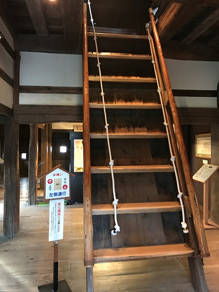 内部の階段は・・・梯子をかけたような勾配で、ぶら下げられたロープを頼りに上下します。