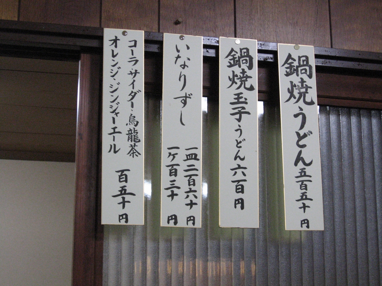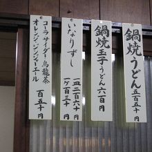 メニューは鍋焼きうどん 卵あり・卵無し 稲荷ずしだけです。