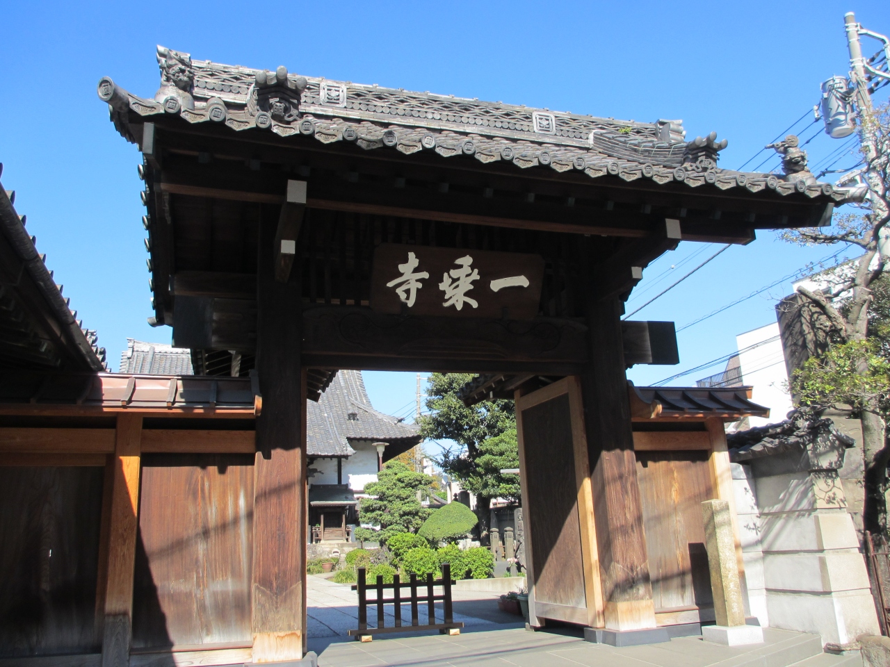 谷中の寺巡りで訪れました。谷中6丁目交差点角にある日蓮宗の寺院です。山門を入って驚いたのは木造本堂と庫裏の古さと威厳です。谷中の寺院は建て替えられた本堂や庫裏が多いですが、一乗寺は歴史を実感できる木造建築物です。本堂とのバランスがよい植木や石は趣があります。木造本堂と庫裏を見ると心穏やかになります。このまま維持していただきたいものです。