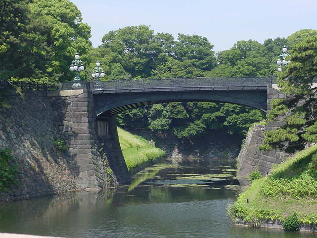 地下鉄の駅名にもなっている二重橋。正式には正門鉄橋というそうですが、正門石橋とセットにして見学したい美しい建造物です。お堀にその姿を映しているのが見応えがあって、観光客のみなさんもさかんに写真を撮っている場所です。