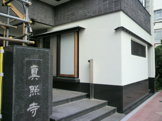 東上野稲荷町の真照寺は、浄土真宗のお寺ですが、南側の一部が工事中でした。