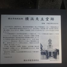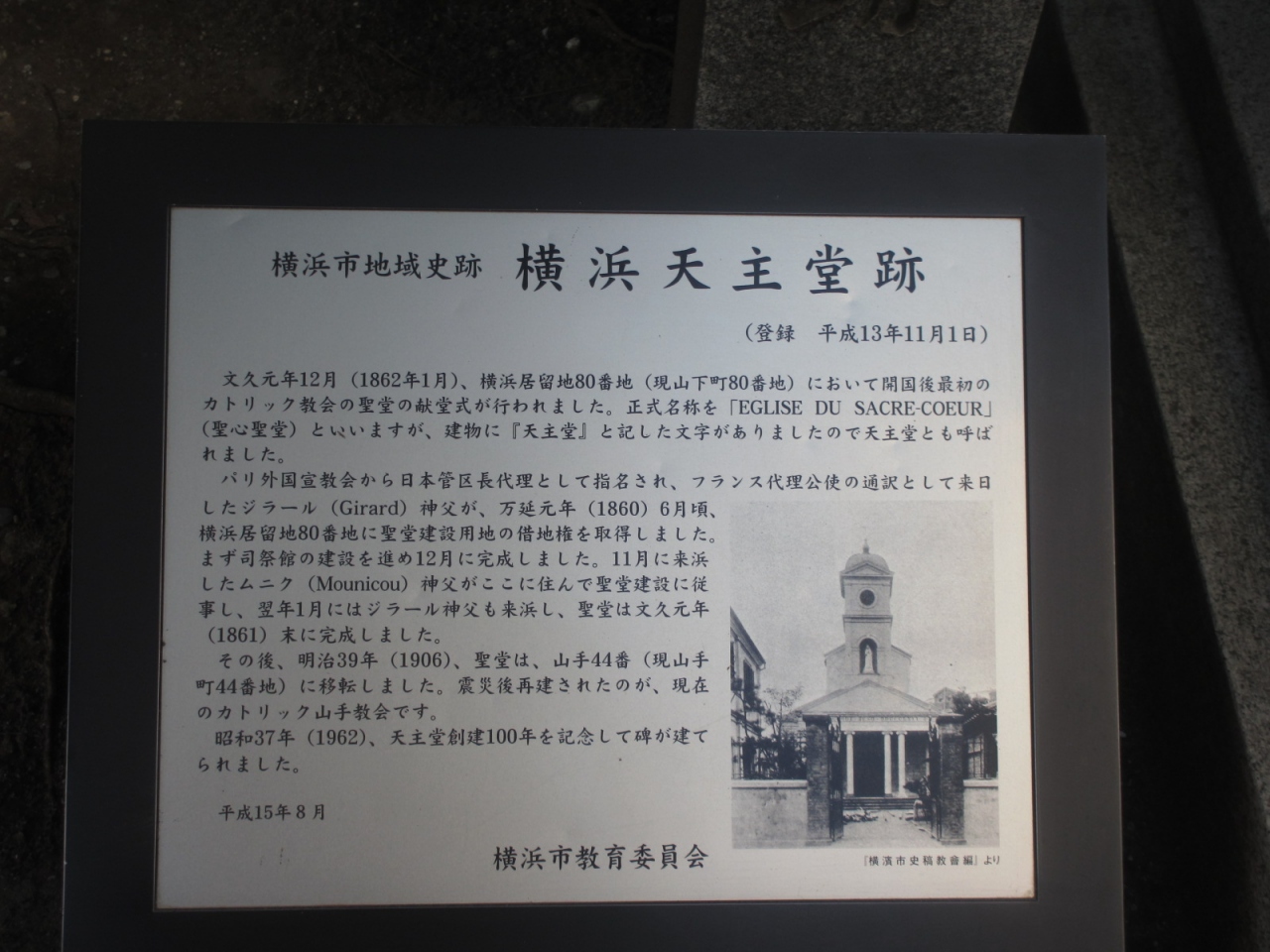 みなとみらい線の元町・中華街駅の2番出口を出てすぐの場所の建物寄りの場所にあります。2番出口を出たところで待ち合わせをしたら偶然見つけました。開国後最初のカトリック教会だったようです。今の風景からはちょっと想像できませんでした。