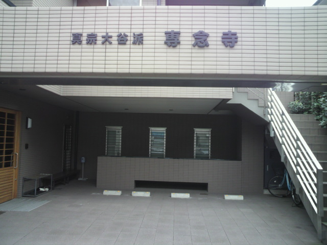 東上野稲荷町の専念寺は、浄土真宗大谷派の寺院で、タイル張りの建物がきれいなお寺です。