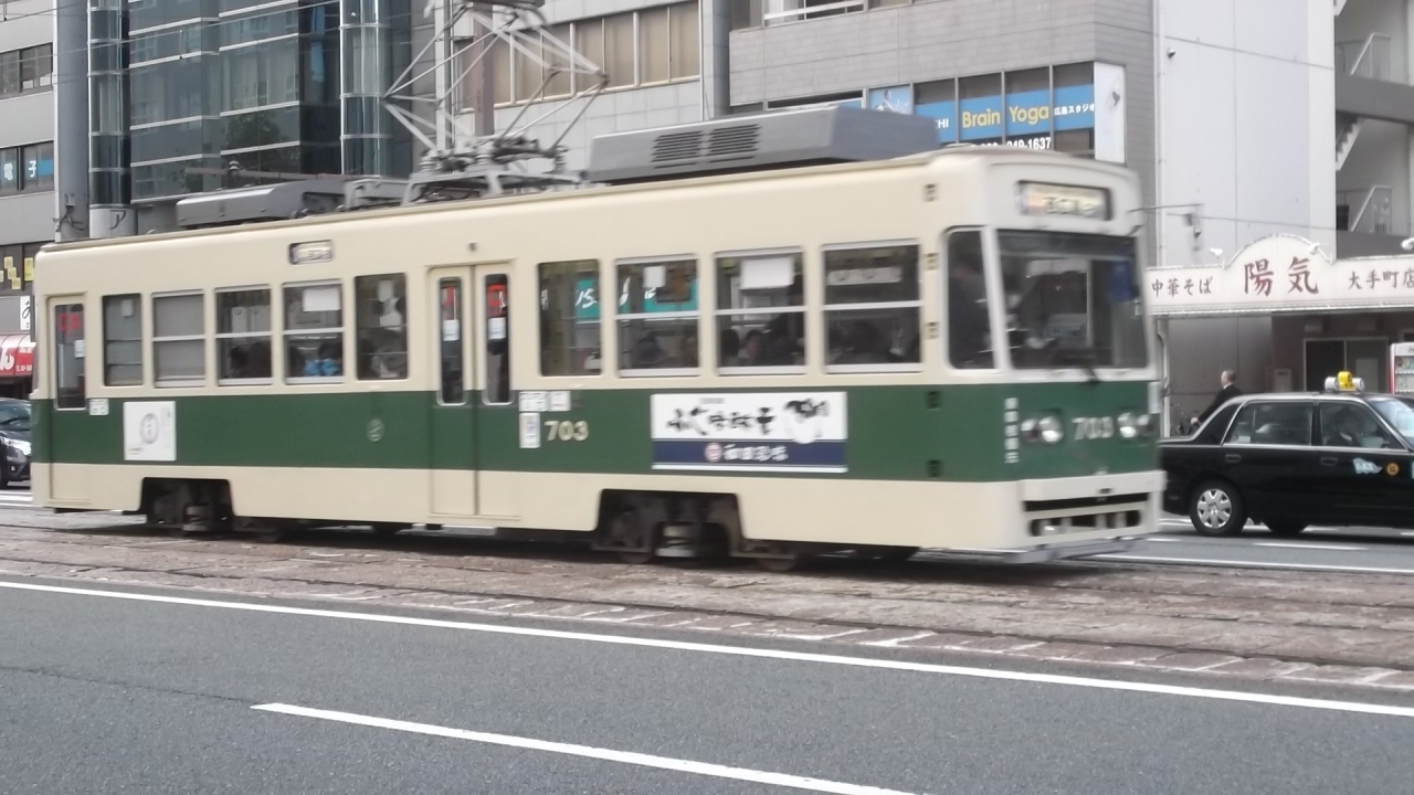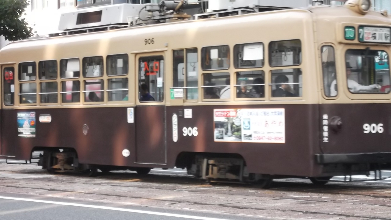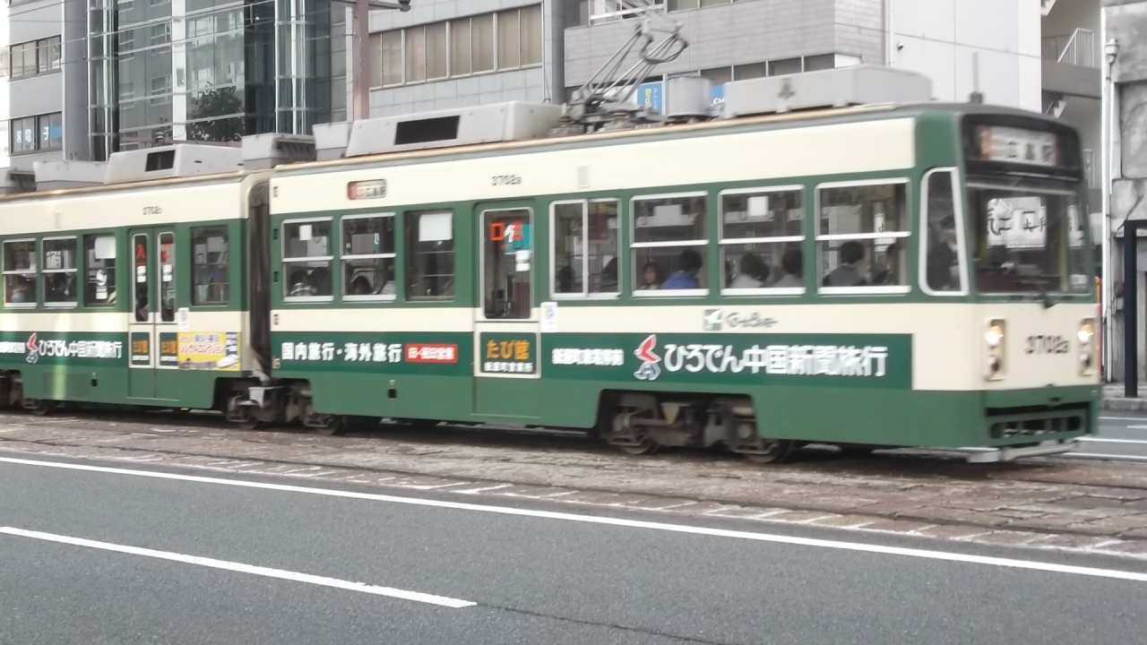 広島市街地を3系統でむすんでいるんでしょうか??? 今や東京・大阪などの都会では見受けられず乗れない、懐かしい市電です。車輌もいろんな形やボディのカラーがあり、しばらく立ち止まって写真を撮っていました。紙屋町東から中電前まで乗車して260円だったことを覚えています。