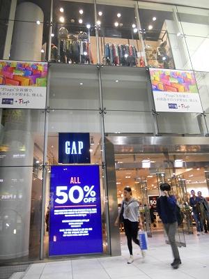 アメリカ最大の衣料品小売店「GAP」の新宿駅東南口からすぐの商業施設「FLAGS(フラッグス)」の1階と地下に入っている店舗です。