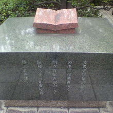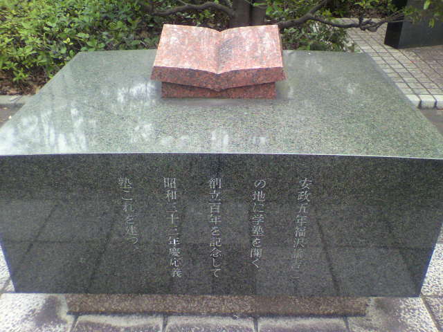 築地駅から月島方面にてくてく歩いたあたりに、本を開いたカタチの石碑がありました。ここが「慶應義塾発祥の地」だそうです。
