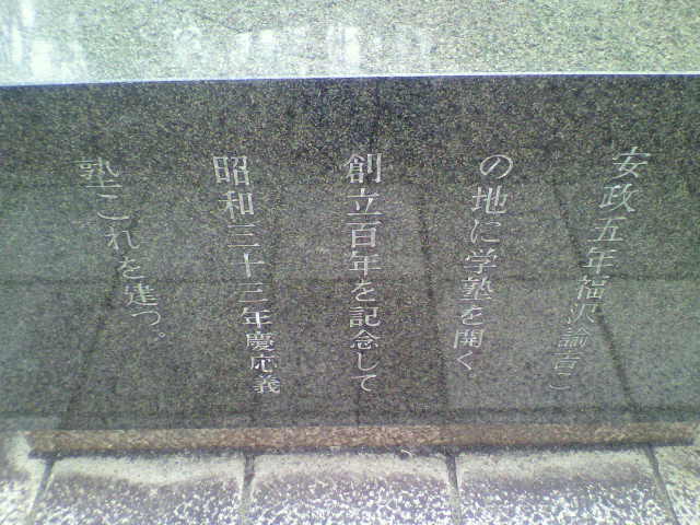 石碑には「安政五年福沢諭吉この地に学塾を開く」と彫られています。安政五年と言えば、安政の大獄真っ只中ですなー。