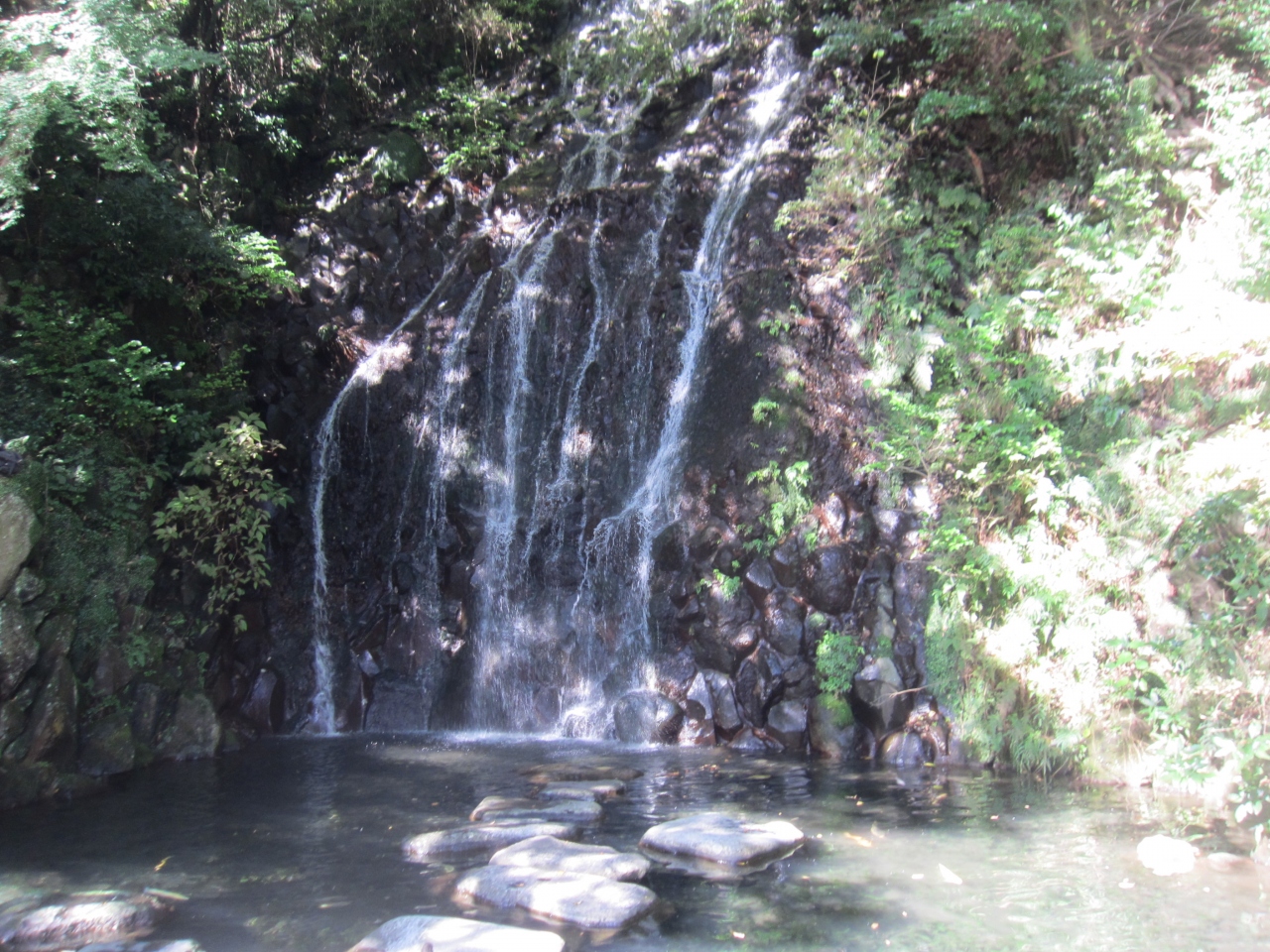 箱根湯本の旅館天成園の庭園に飛烟の滝と玉簾の滝という二つの滝がありました。庭園に入ってすぐのところにあるのが飛烟の滝、玉簾神社を挟んで奥にあるのが玉簾の滝です。旅館にある庭園ですが、自由に入ってみることができ、どちらも結構立派な滝でした。玉簾の滝の水は女流歌人与謝野晶子も愛飲し、「山荘へ 玉簾の滝 流れ入り 客坊の灯を もてあそぶかな」という歌を詠んだそうで、紙垂がかけられていて神聖な感じもする滝でした。