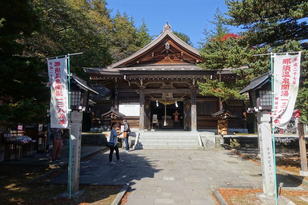 殺生石の手前にある神社。創建は630年で、那須与一が屋島の戦いの前に祈願したとも伝わる歴史ある神社です。大鳥居から拝殿までまっすぐ参道が続き、拝殿の右脇から奥へ進むと殺生石へとつながっています。さざれ石、見立神社、御神木、五葉松、九尾稲荷など、境内には細かな見所が多いです。