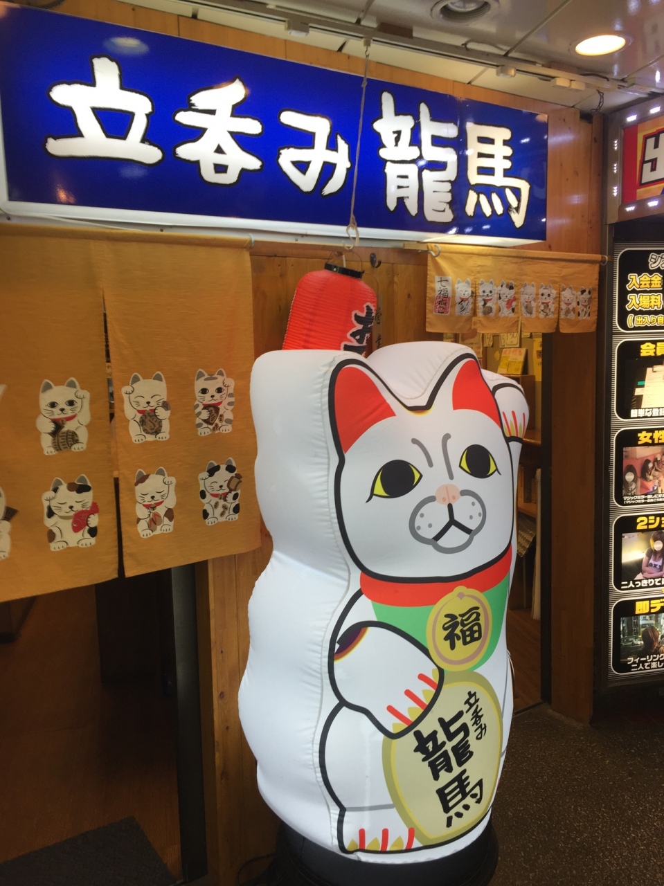 コマ劇場通り今はゴジラが見える通り沿いにある立ち飲み屋さんです。一階にありますが、あんまり目立たない感じです。値段もキャベツは100円から串揚げも100円くらいからなんで安心して飲むことができます。長居よりはさらっと飲むお店です。