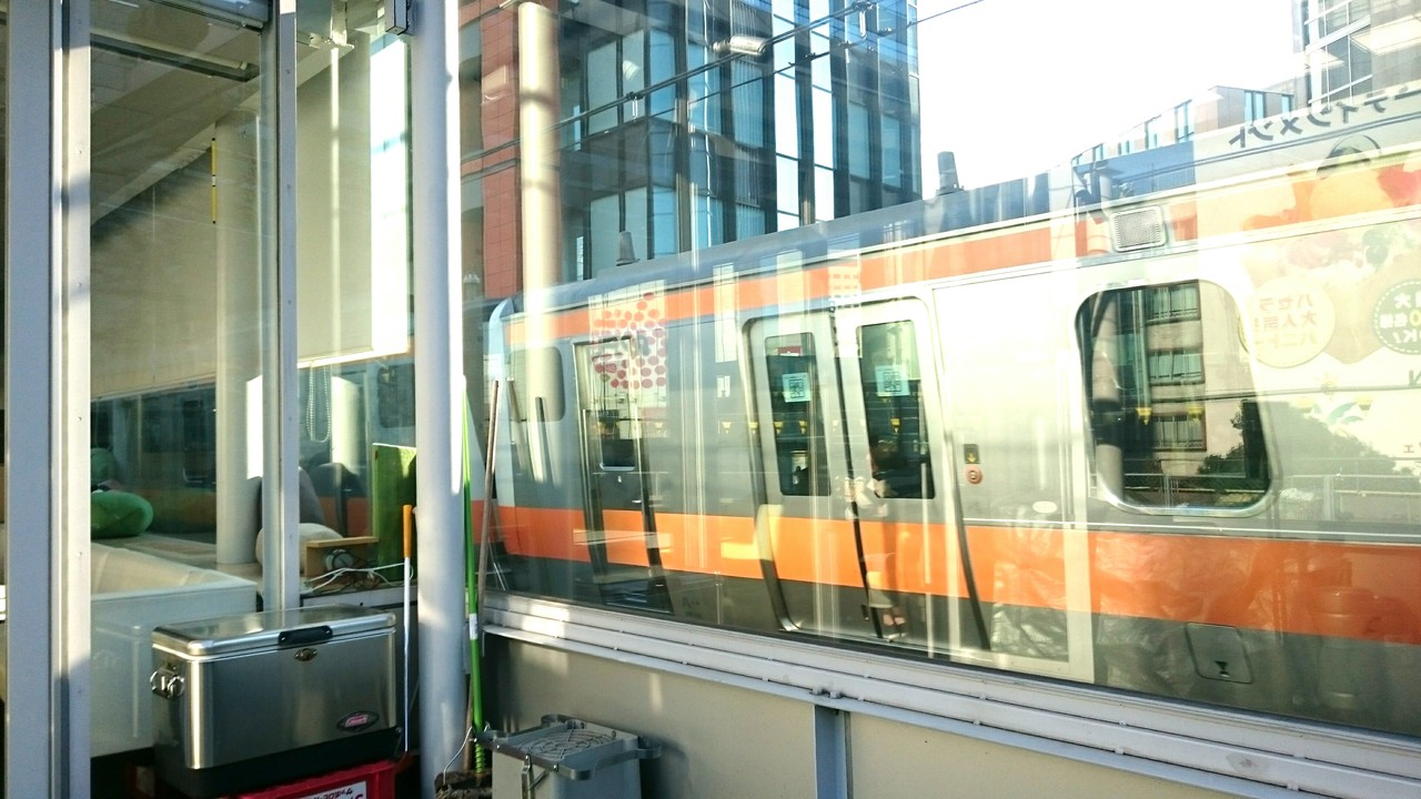 元がホームなので中央線の上下線に挟まれる形で食事をする事が出来ます。