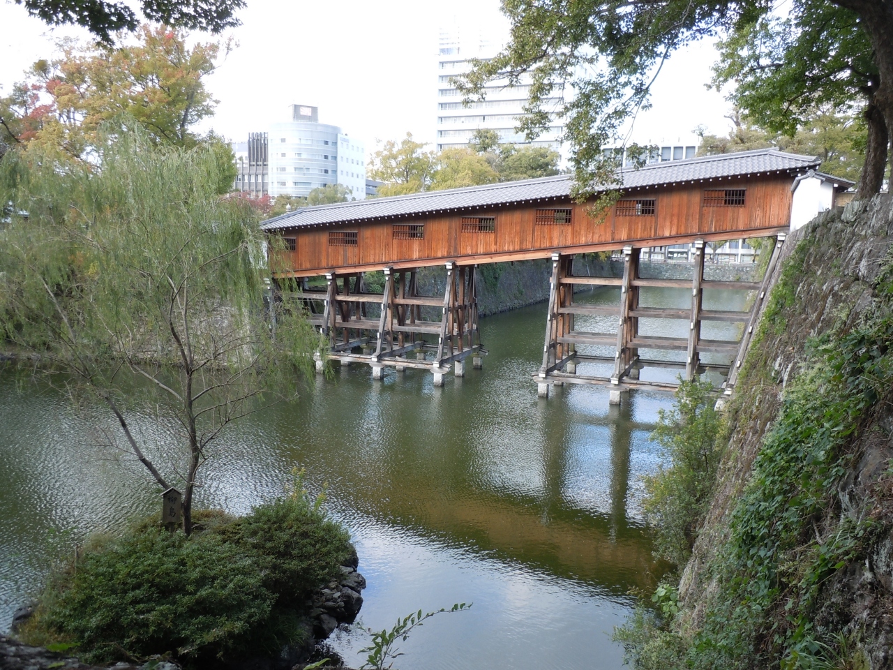御橋廊下といって屋根付きの橋があり、二の丸と紅葉谷庭園を結んでいるが、ここも無料で橋を渡ることができるが、靴は脱いでわたる。