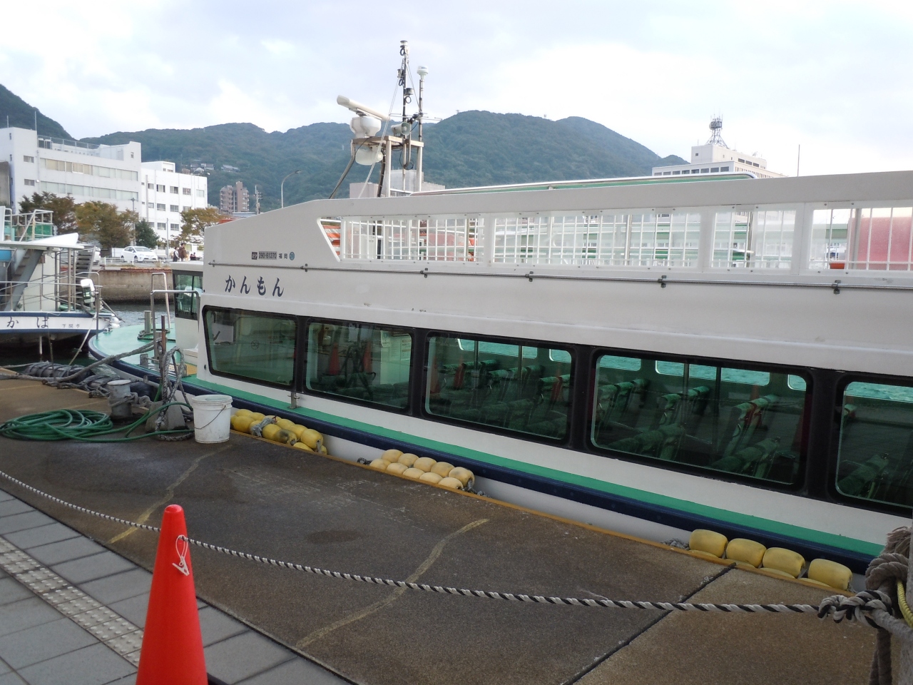 門司港と下関唐戸市場を5分で結ぶ船。ほぼ20分間隔で走っている。天気がいい日はデッキで風に吹かれて乗っていくと快適。