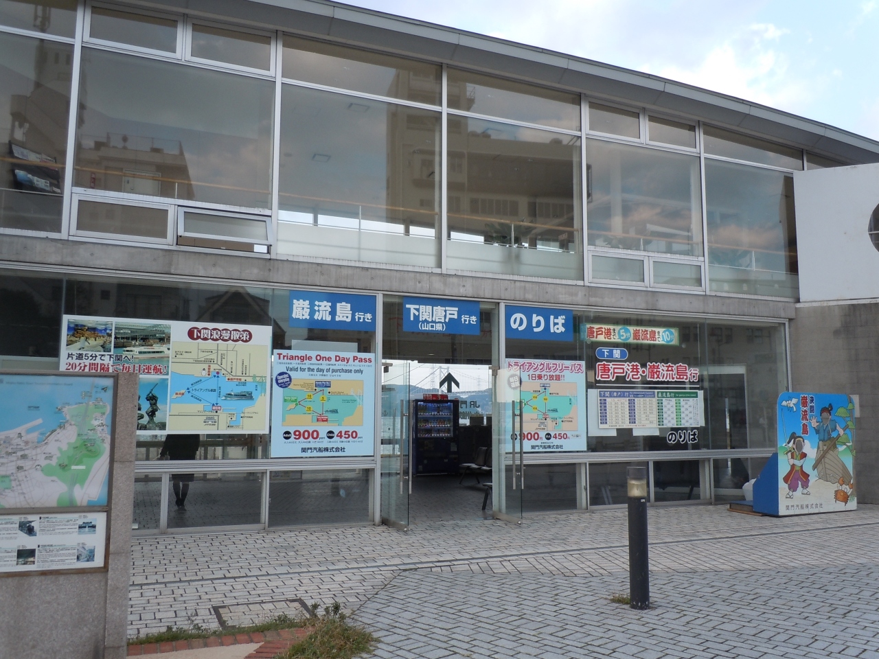 JR門司港駅から海に向かって進めば門司港乗り場。唐戸からは下関駅行きのバスが多数。門司港で焼きカレー、唐戸でふぐを食べるとグルメツアーには盛沢山。