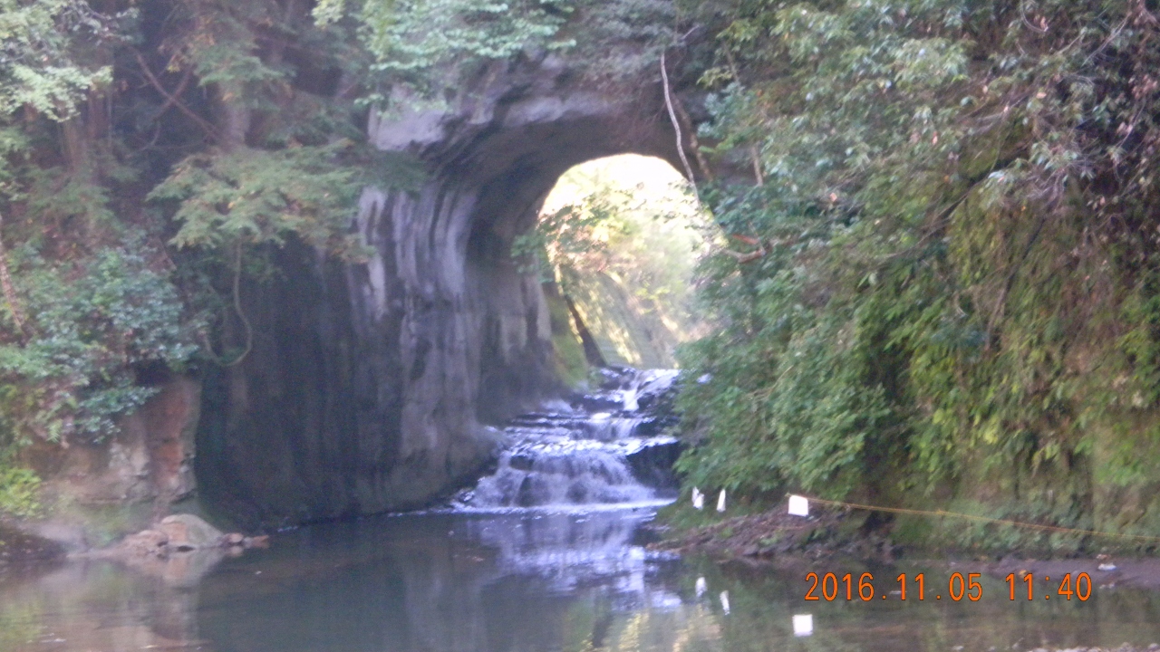 駐車場は3か所。無料です。5分ほど整備された遊歩道を歩くとあります。人工的に掘った川回しのトンネルなのですが、確かに不思議なパワーが感じられるところでした。水がありますので、滑らないように気を付けなければなりませんが、やはり川に降りてみたいです。帰り道は木道があり、川床を見ながら、モミジが赤くなったらもっと美しさが増すなぁ!と思いました。一方通行になっているので、混雑感はありません。