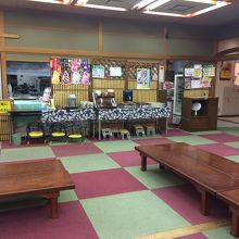 京都府笠置町にある『天然わかさぎ温泉いこいの館』にあるお食事処です。2Fにあります。ここは、レストランというより宴会場を食事提供の場として設けているという感じの場所でした。