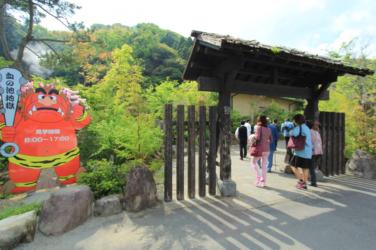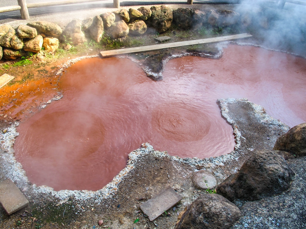 かまど地獄は1丁目〜6丁目まであり、青色、コバルトブルー、泥色、赤茶色など、いろいろな色の地獄を巡れます。