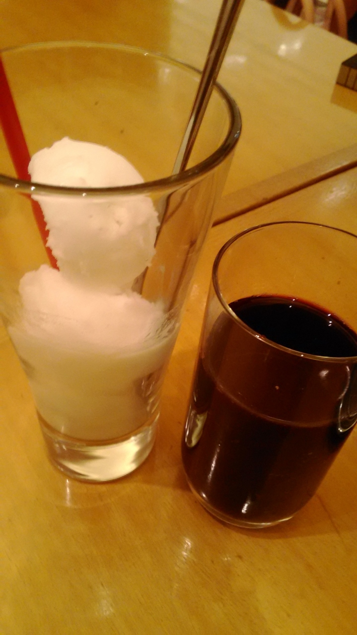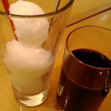 ぶどうジュースとシャーベットが別々に入れられてます。シャーベットにジュースを注いで混ぜて好みの固さにします。