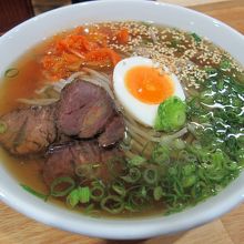 麺の色がどちらかというとそばのような感じで、食感はもちもちしてました。