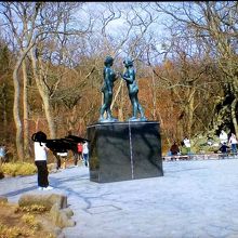 十和田湖と乙女の像は、一体です。詩人でもある作者高村光太郎は、向かい合い互いに手を合わす鏡のような二人の乙女の像を湖岸に造りました。まるで、湖の神の化身のようです。合わす互いの手に祈りを感じます。自然と芸術の一体です。