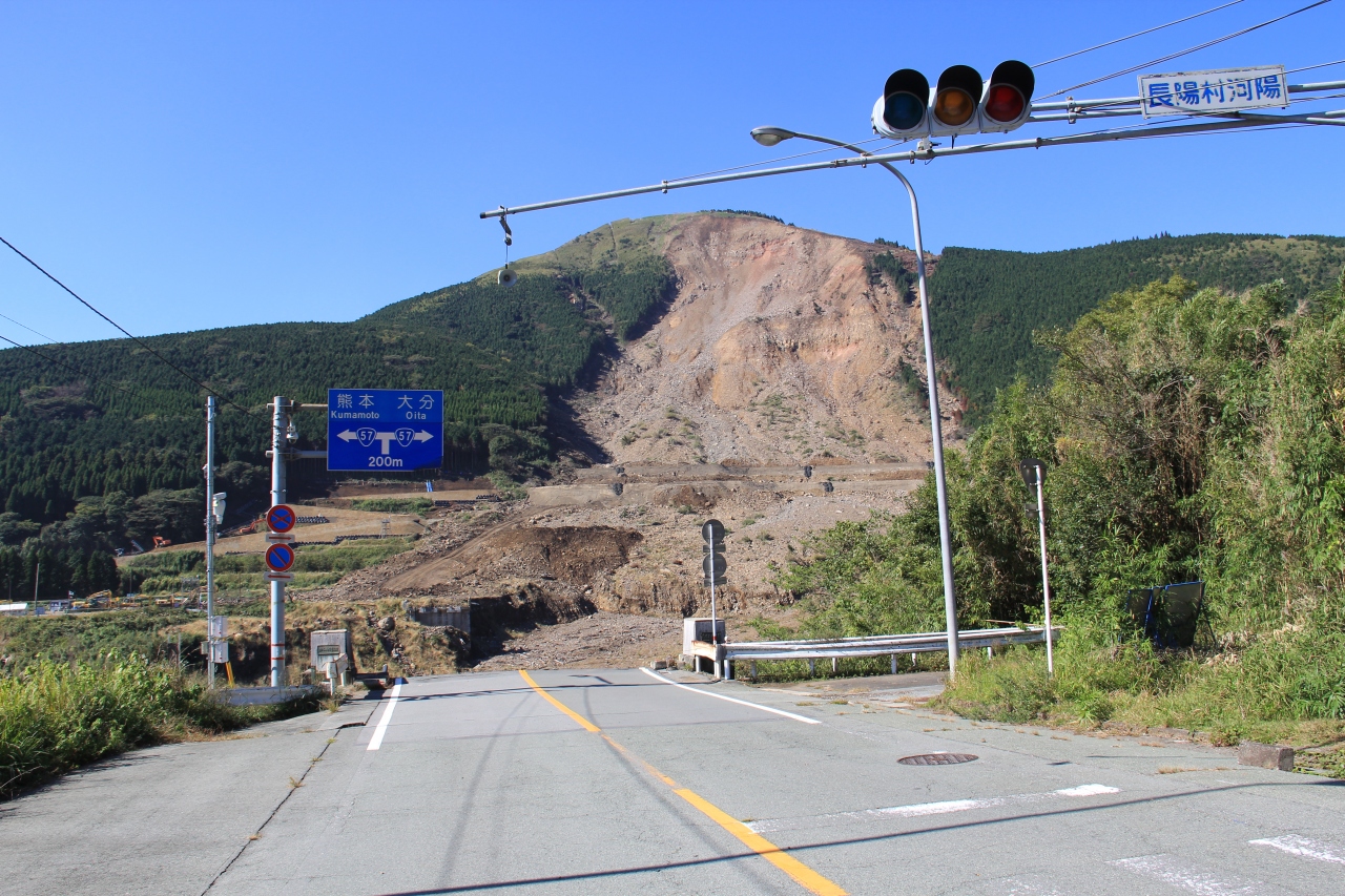 揺れで橋が落ちたのではなくて、地震で向かいの山が崩れ、そのと一緒に落橋したのが判ります。