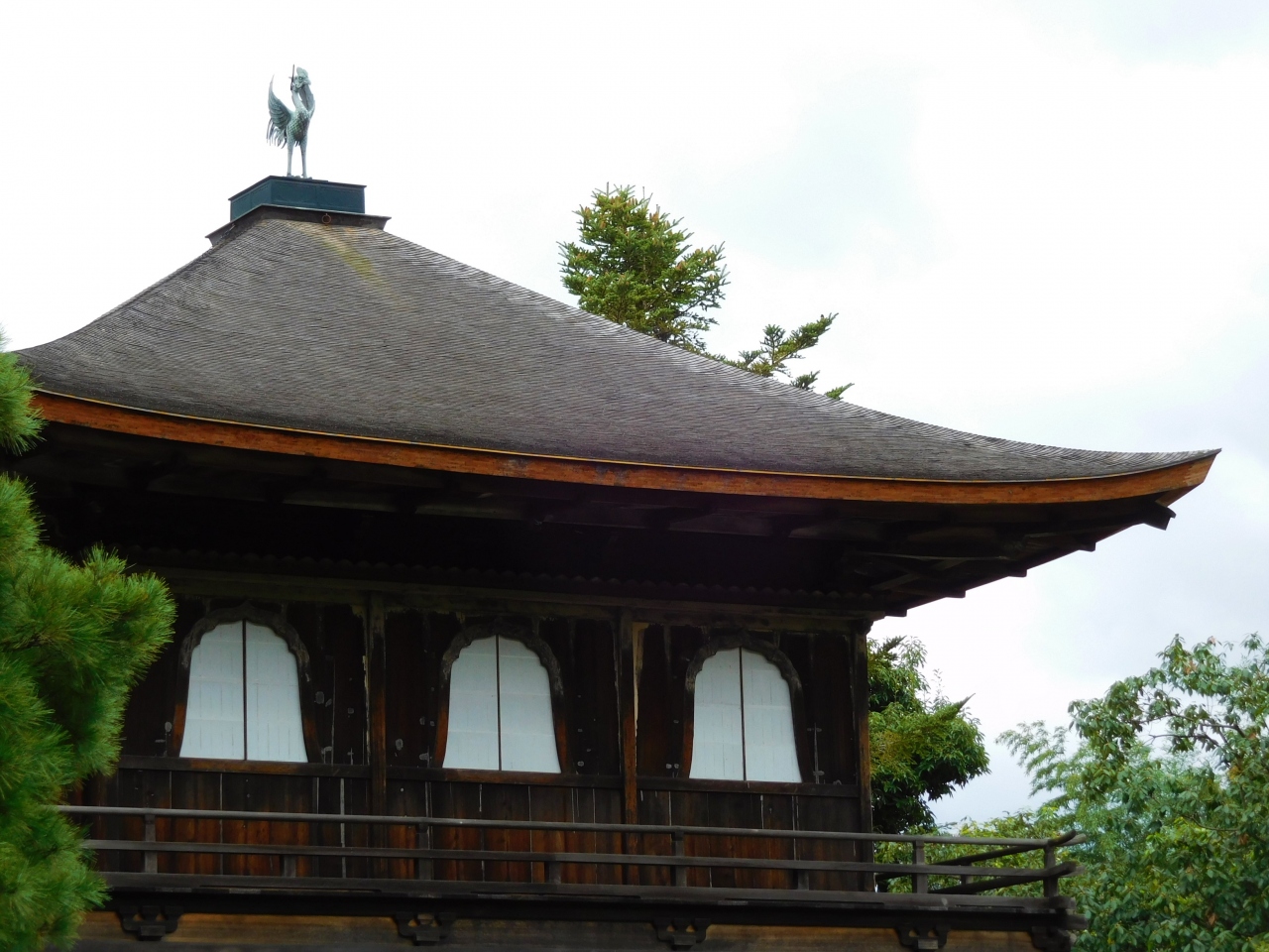屋根には聖堂の鳳凰が観音菩薩を祀る銀閣を守っています。