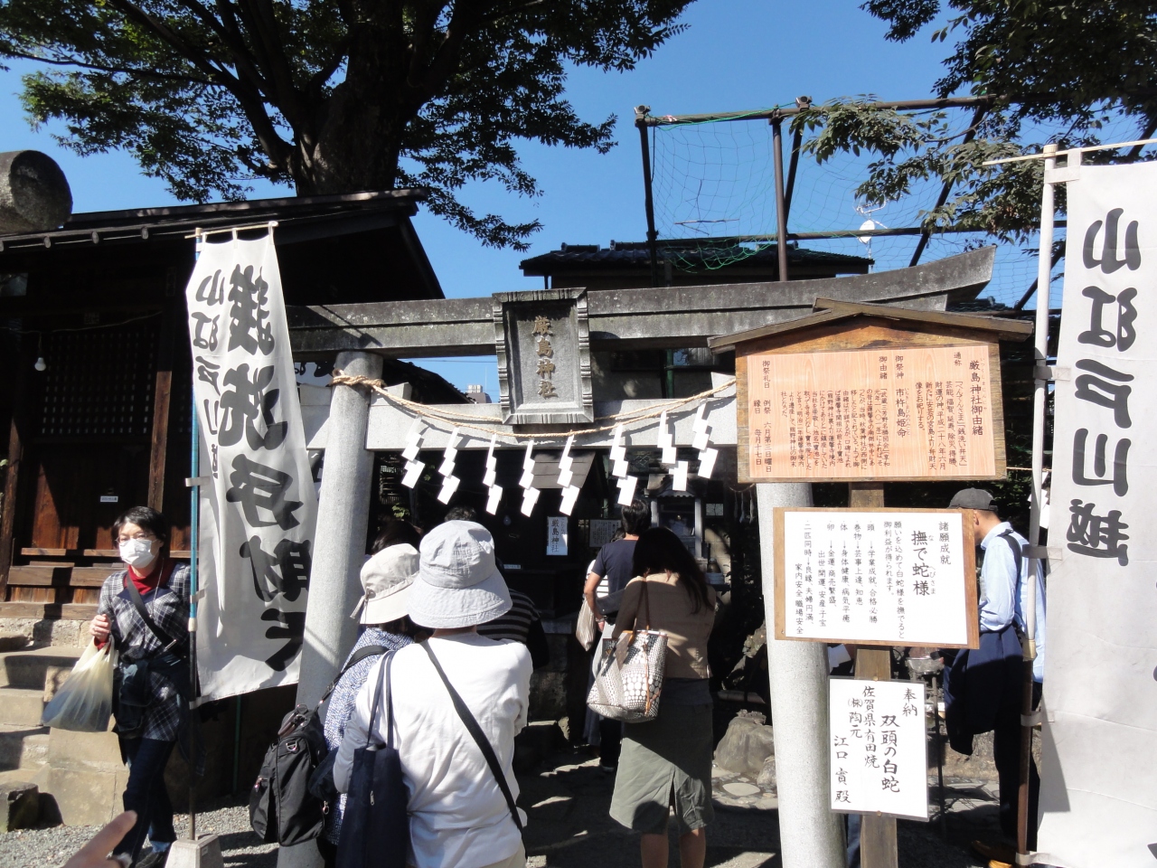 川越熊野神社の境内にあります。本殿のすぐ手前にあり「銭洗弁財天」と旗がなびいているのですぐに分かります。ここでお金を洗っている人が沢山いました。川越熊野神社は様々な神様が祀られているので人気があるようです。川越まつりの日に寄ったので、境内にはヤタガラスの提灯がたくさん飾られ賑やかでした。