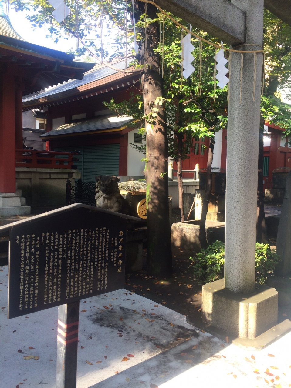 瑞鳳殿の裏手にある4つの神社の左側にあります。大魚安全を祈願しに来たのか、魚市場関係らしき人がお参りに来ていました。白い鳥居を潜ると獅子の像が左右で睨みをきかせ、その後ろは社殿です。お賽銭箱もある小さな神社でした。