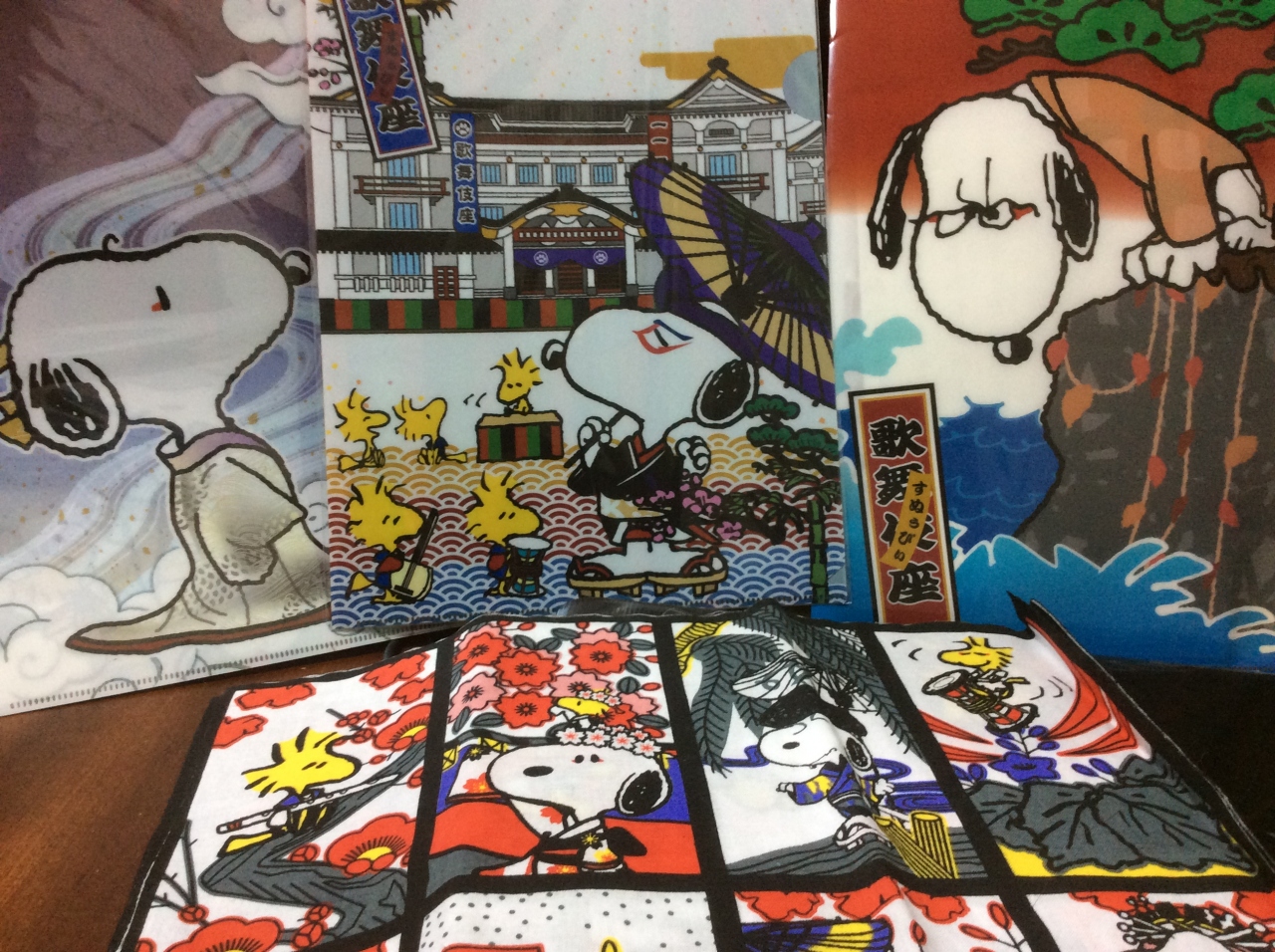 歌舞伎座の場内限定でスヌーピーとのコラボグッズがあります。