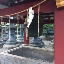 両サイドに御水舎はありますが、右側には大きな鈴が釣り下げられていますが、製作などは不明なようです。それにしても大きく立派な鈴です。