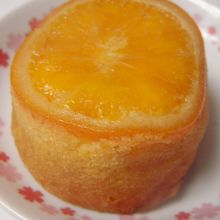 ケーキ生地を円筒状の型に収め、オレンジスライスを乗せて焼き上げたらしい。