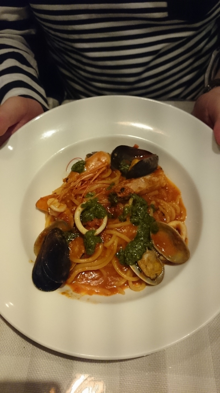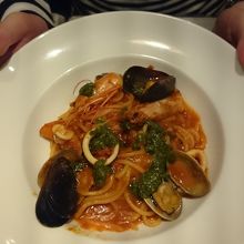 ペスカトーレをいただきましたが、ソースはピリ辛でした。